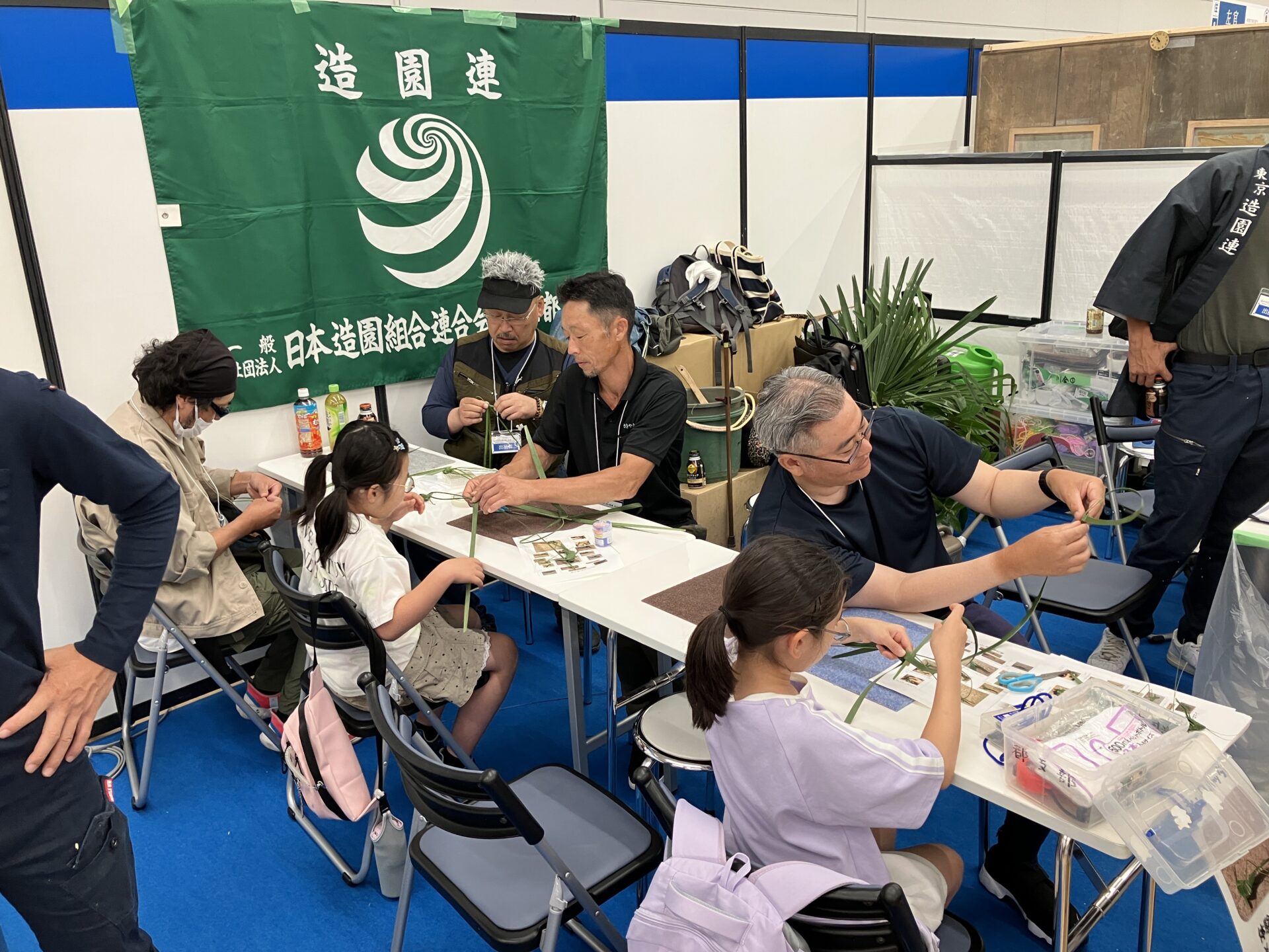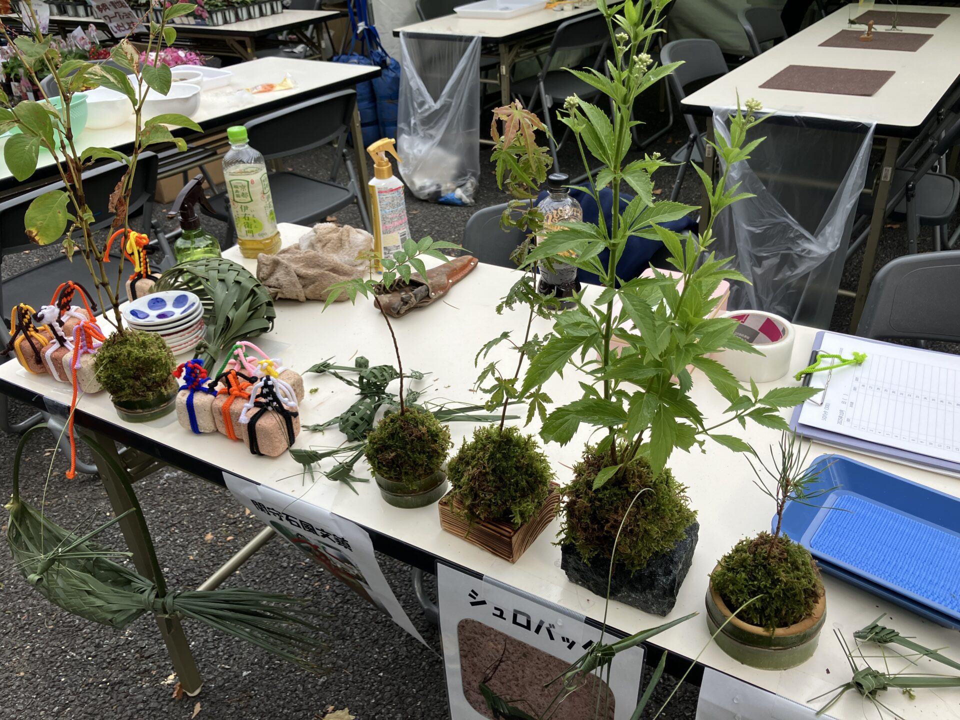 10月下旬には日比谷公園ガーデニングショー2025に参加。今年は初の苔玉製作体験を行い、組合員手作りの石や木の台(苔玉を載せる器)が好評を博しました。