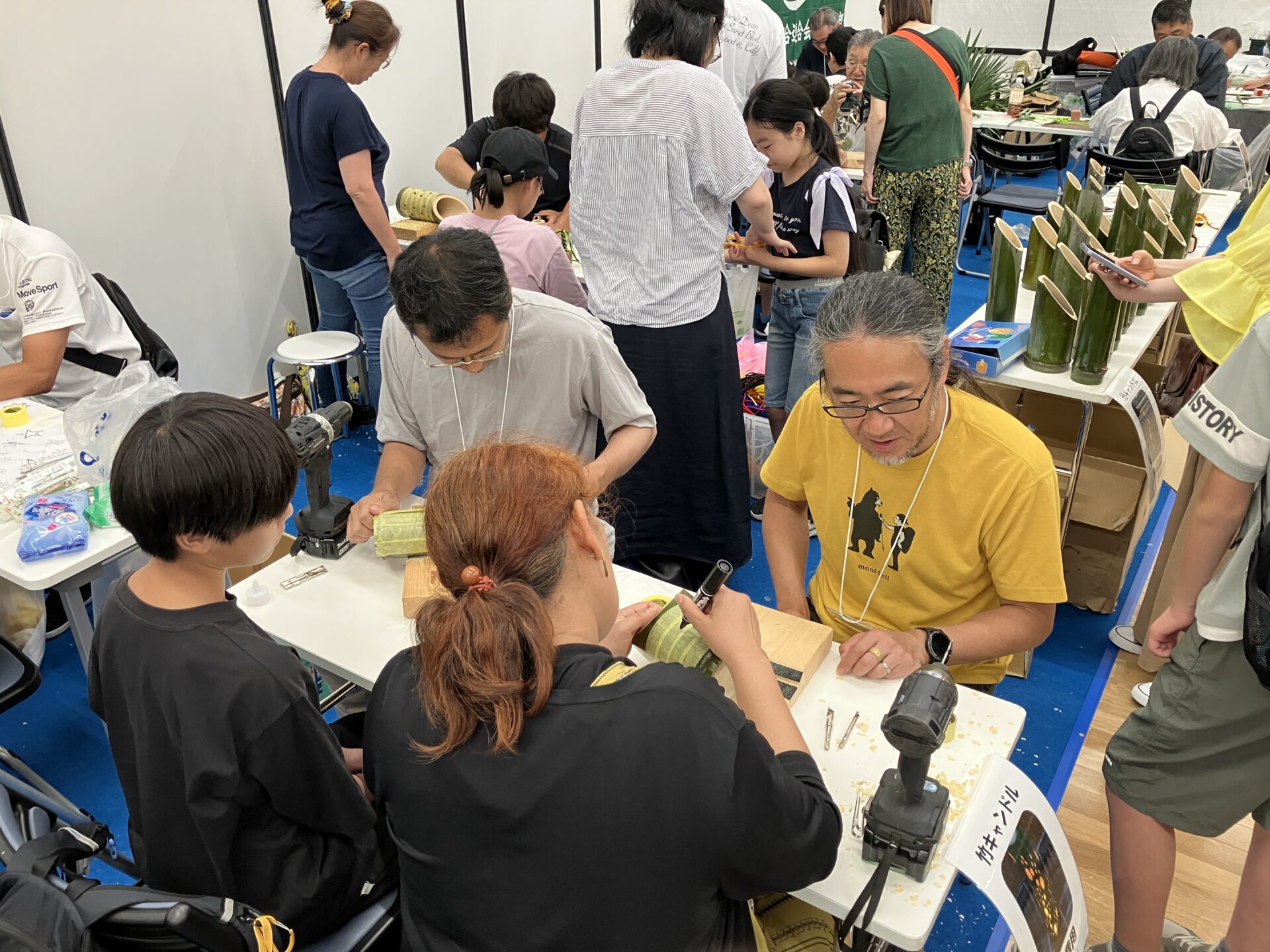 会期中は庭のメンテナンスのほか、竹灯りやシュロバッタ、関守石風文鎮の製作体験を提供しました。