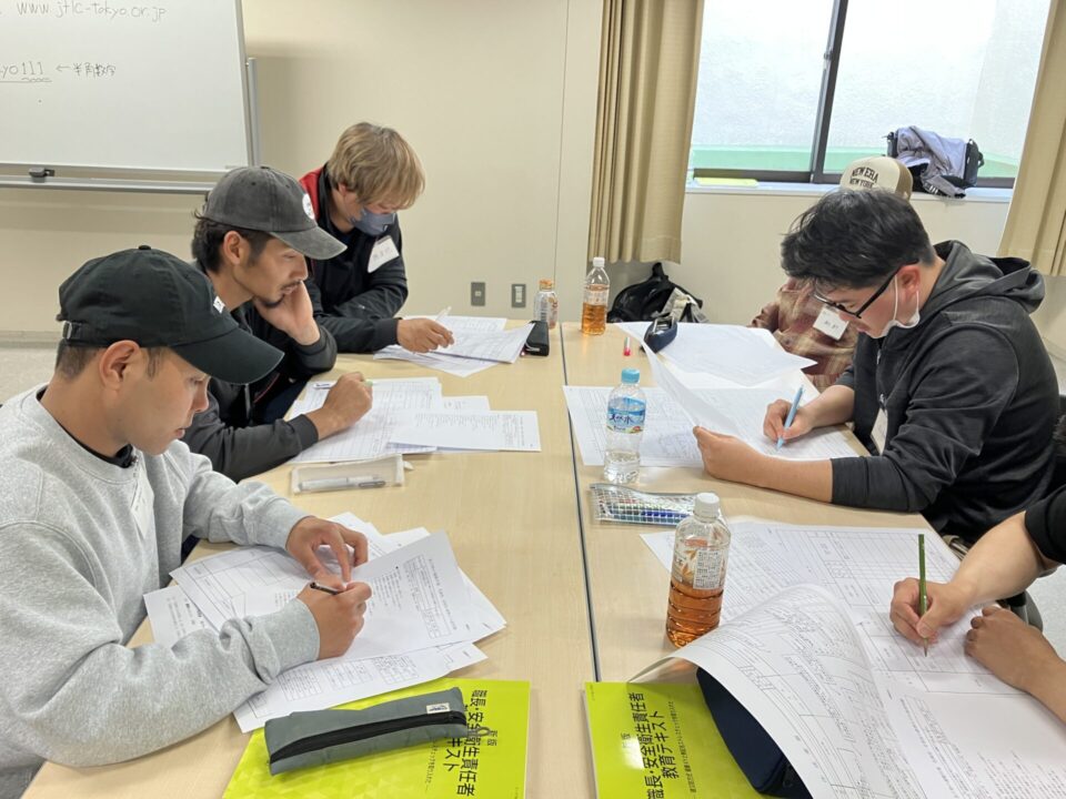 職長・安全衛生責任者教育を、令和8年4月17日(金)・18日(土)の2日間にかけて、たましんRISURUホール(立川市)にて実施しました。合計14時間という長丁場の講習でしたが、一方的に講師の話を聞くのではなく4班に分かれてのワークショップ形式で、全員が積極的に討議に参加する実りのある特別教育でした。