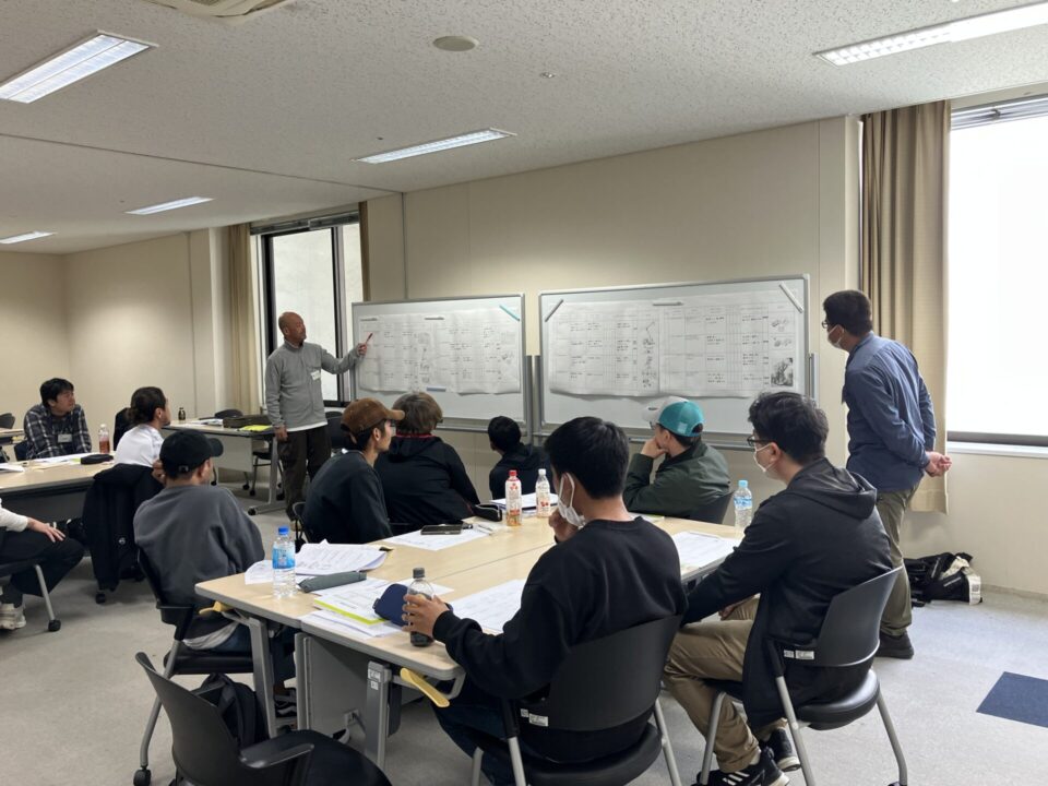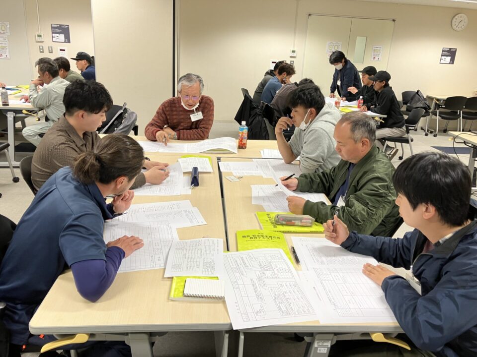 「職長」の目線で、講師が用意した現場イメージをもとにグループでKY表を作成し、代表者が発表しました。基本を徹底するだけでなく、現場によって異なる状況に対応できるよう、安全衛生の視点で自ら考える力を養いました。